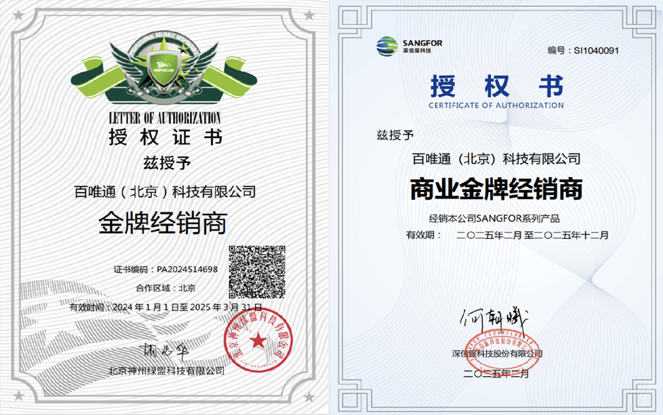 百唯通(北京)科技有限公司成立于2019年1月25日,注冊資本1000萬元,是一家專注于信息化系統集成、網絡安全服務及IT綜合解決方案的高科技技術企業。專業的人才以技術創新為核心,致力于為政府、企事業單位提供全方位的信息化建設與安全服務,助力客戶實現數字化轉型與業務高效發展。企業承諾 百唯通始終以“技術驅動安全、服務創造價值”為理念,依托專業團隊與豐富的行業經驗,為客戶提供全流程技術支撐與7×24小時快速響應服務。未來,公司將持續深耕網絡安全與信息化領域,助力國家數字經濟發展,護航企業數字化轉型!企業資質